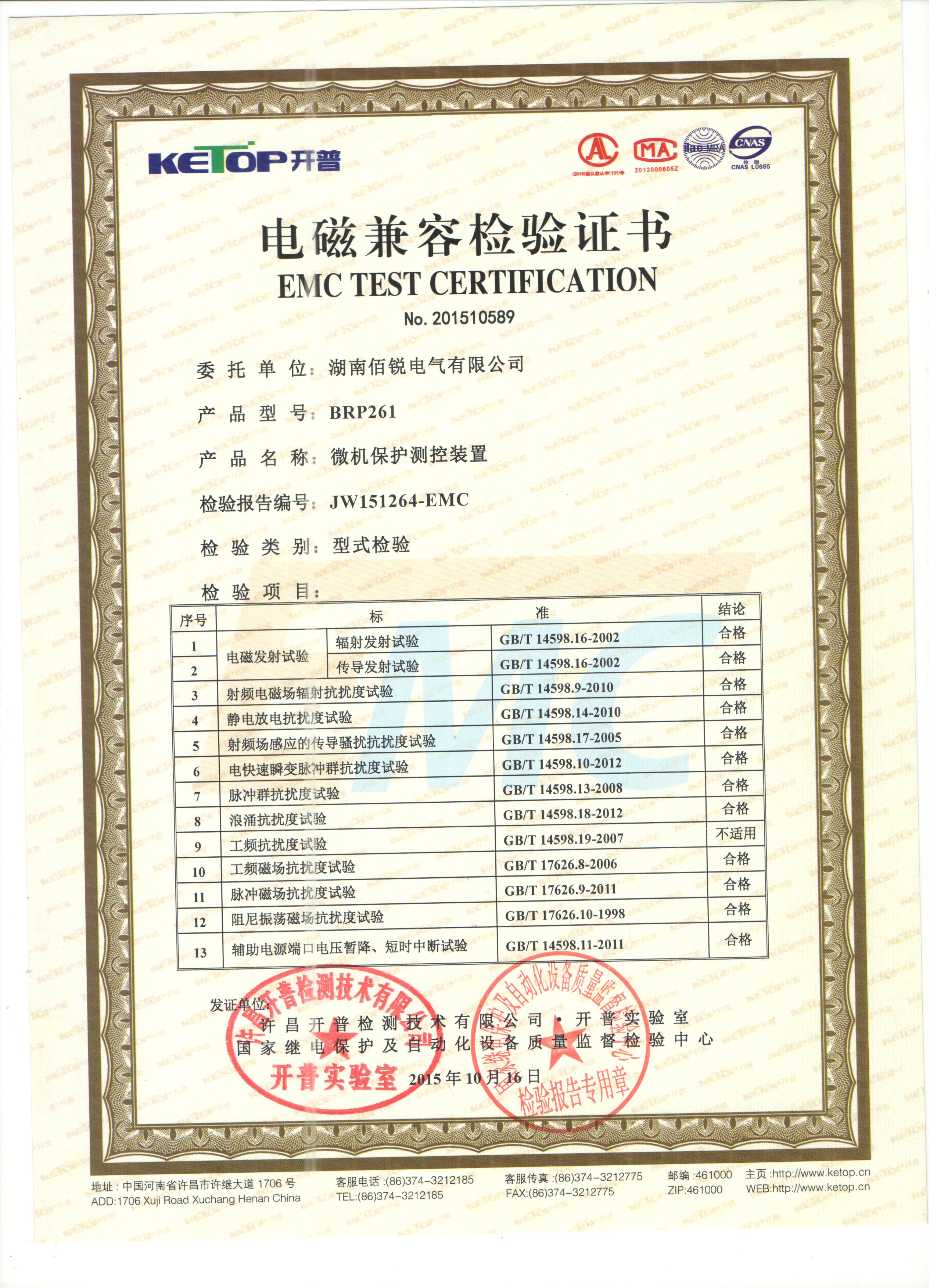 BRP261电磁兼容性试验报告