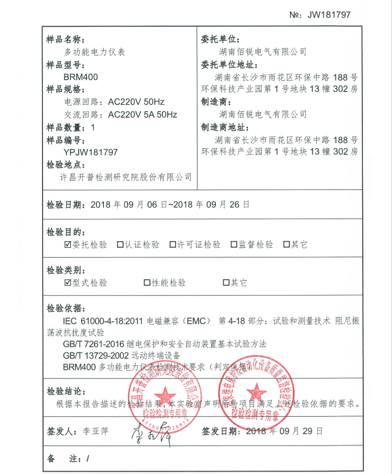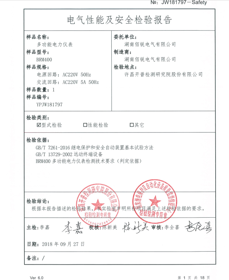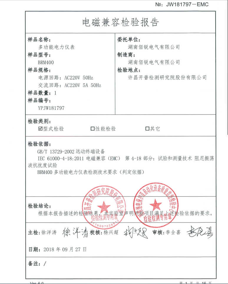 BRM400仪表检验报告