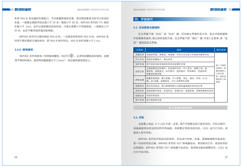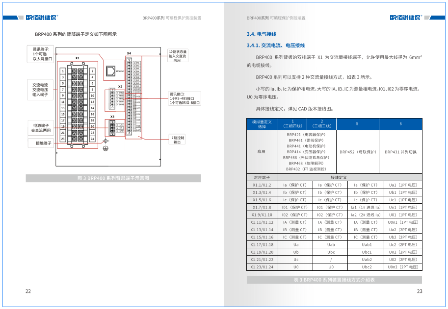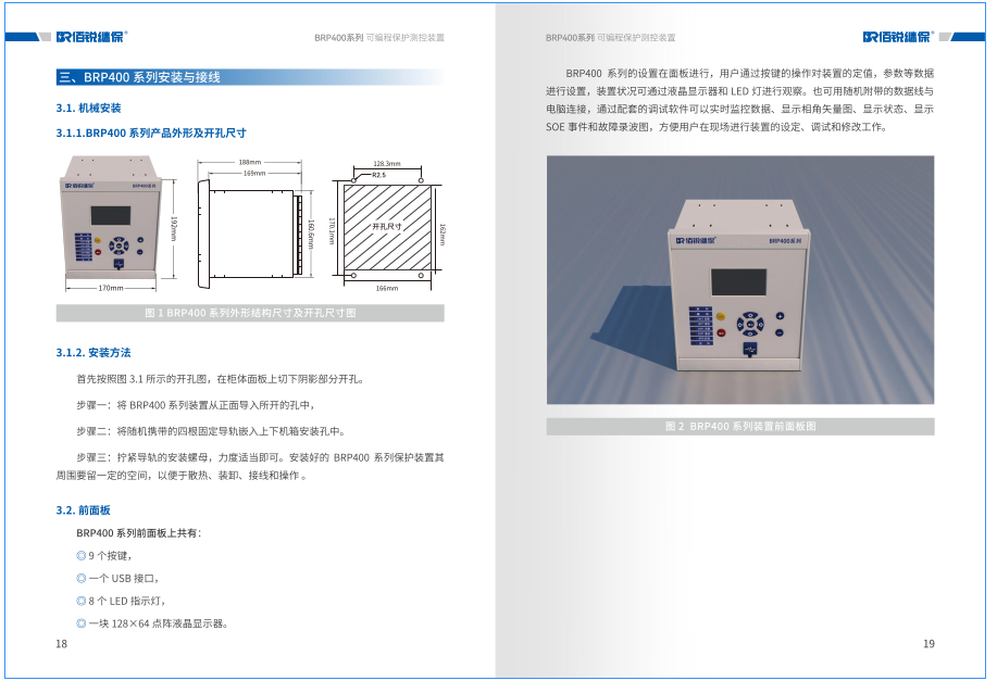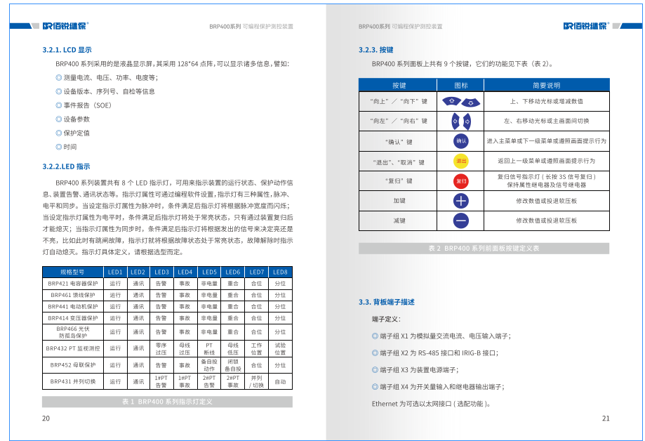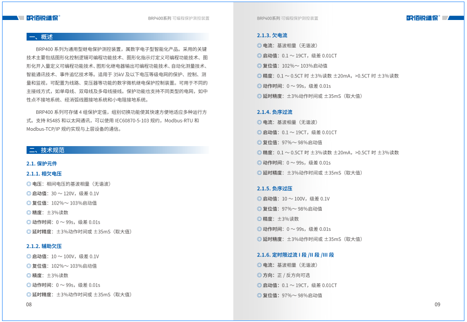BRP400系列产品是在中美芯片贸易战越演越烈之际,公司基于国产兆易创新高性能芯片为平台开发的可编程保护测控装置,提供12路模拟量:保护电流Ia/Ib/Ic/I01/I02,测量电流IA/IB/IC,电压Ua/Ub/Uc/UN或者进线电流1Ia/1Ib/1Ic/2Ia/2Ib/2Ic,1进线电压1Ua,I段母线电压1Uab/1Ubc/1Uca;2进线电压2Ua,II段母线电压2Uab/2Ubc/2Uca采集,10路开入,7路开出继电器,1路485,1路以太网,一路B码对时.按其用途分为:线路保护测控BRP461、变压器保护测控BRP414、电容保护测控BRP421、电动机保护测控BRP441、联络保护测控BRP452、备自投BRP456、逆功BRP468、孤岛保护BRP466、PT监控装置BRP432、PT并列切换装置BRP431