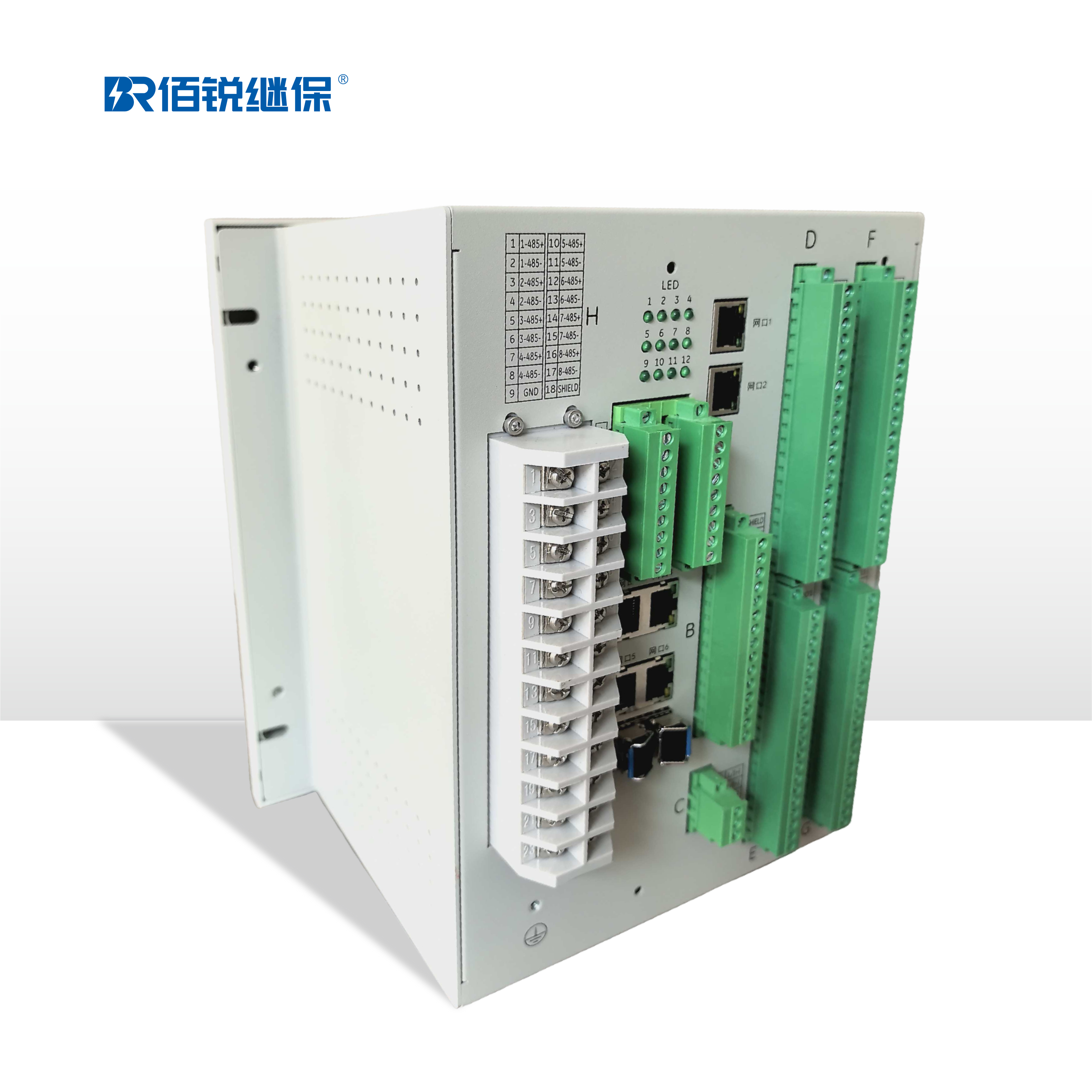 48路开关量输入,10路开关量输出。选配通信板支持8路RS485,四路以太网,两路SFP光口,具备通信管理机功能、管理型交换功能;满足3150KVA以下不需要差动保护的变压器配套使用,作为变压器的保护测控装置。3150KVA及以上变压器需要差动的应为BRP614B